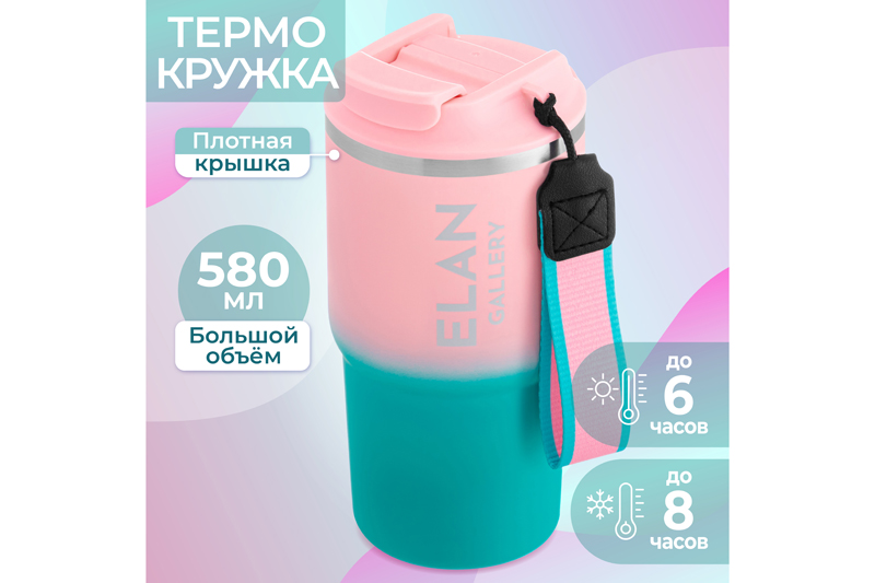 БЫЛО 1588 руб! Термокружка 580 мл 8,5*8,5*17,5 см "Розово-бирюзовая"