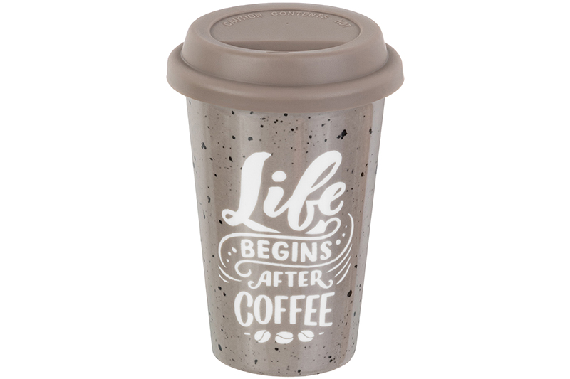 БЫЛО 497 руб! Стакан 400 мл 9,5*9,5*14 см "Капучино" + силиконовая крышка, NEW BONE CHINA