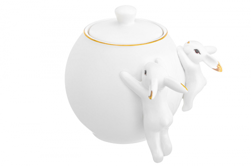 БЫЛО 1120 руб! Сахарница с крышкой 650 мл 15,5*11,7*13 см "Кролики" белая с золотом