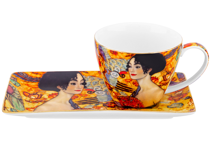 БЫЛО 974 руб! Чашка 250 мл с блюдцем для десерта 20*10*2 см "Дама с веером" NEW BONE CHINA