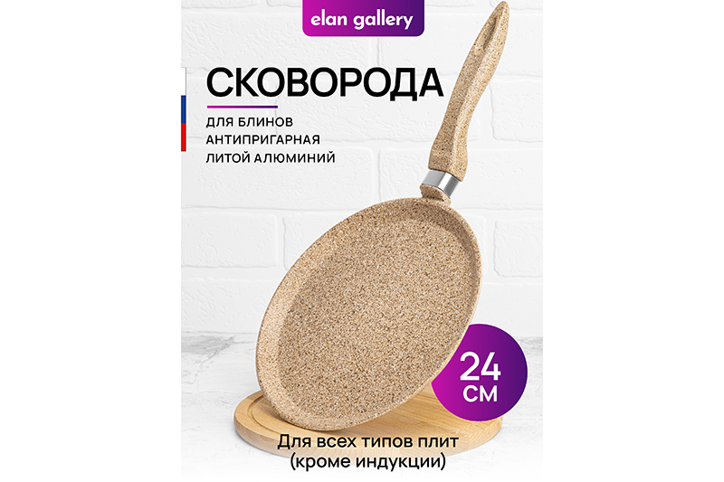 БЫЛО 1664 руб! Сковорода блинная 24 см ГАРМОНИЯ ВКУСА "Медовый гранит" н/р, 45*25*7,5 см