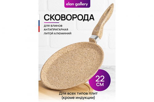 БЫЛО 1522 руб! Сковорода блинная 22 см ГАРМОНИЯ ВКУСА "Медовый гранит" н/р, 39*23*7 см