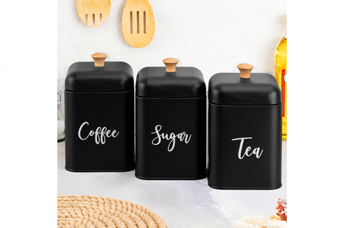 Набор 3 банок для сыпучих продуктов 1,5 л 11,2*11,2*19 см "Tea, coffee, sugar" с крышками, черный