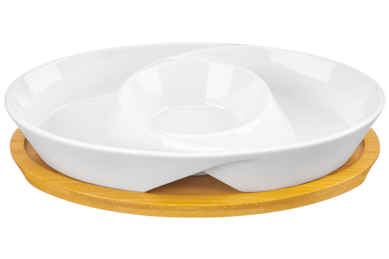 Менажница 25,3*14,7*4 см "Айсберг" цельная глубокая 3 секции + дерев. подставка