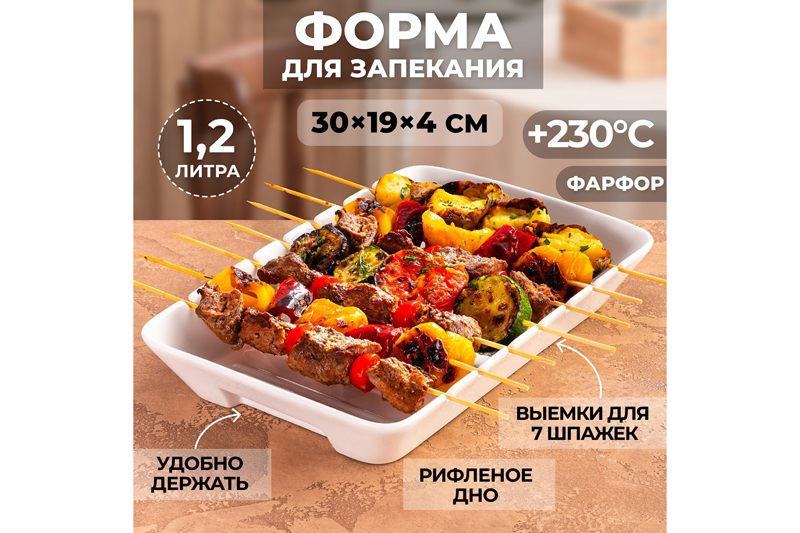 Форма для запекания блюд на шпажках 1,2 л 30,8*19,9*4,5 см "Айсберг"