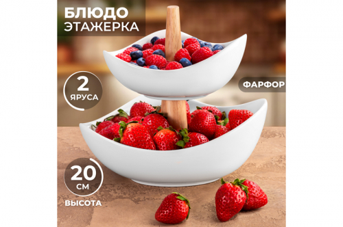 Блюдо-этажерка 2-х ярусная 21,5*19,5*20 см "Айсберг" с бамбуковым креплением