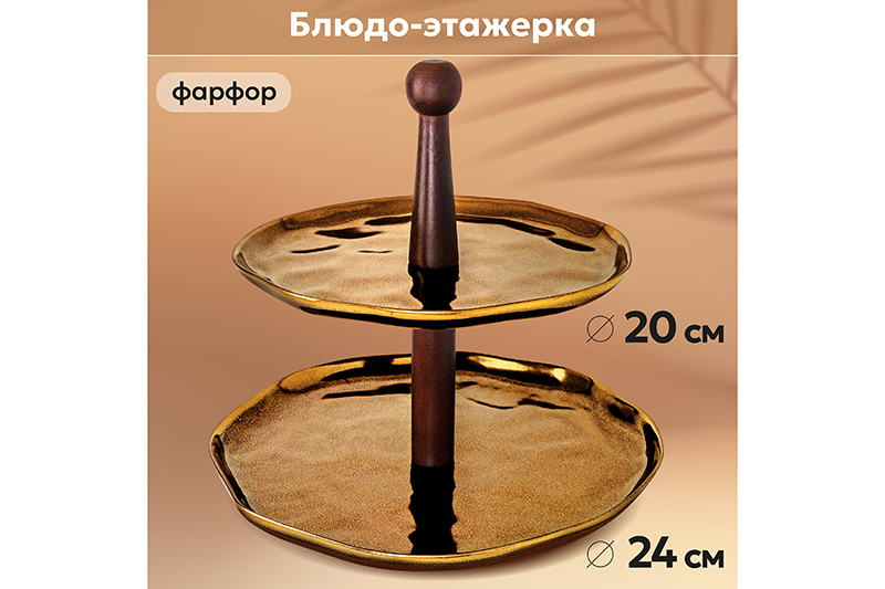 Блюдо-этажерка 2-х ярусная 24,5*24,5*24 см "Бронза"