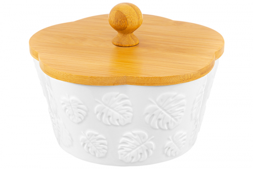 Банка д/хранения 250 мл 9,3*9,3*7 см "Тропики" + дер. крышка-подставка с крыш. с сил. упл.