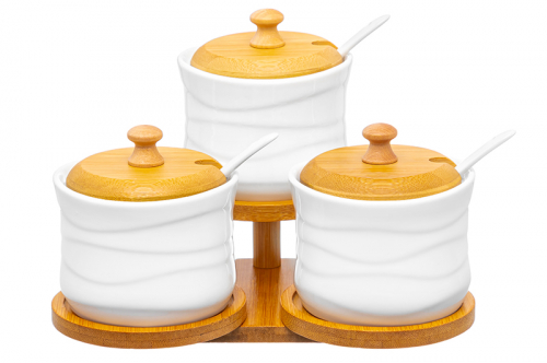 Набор 3 банок д/хранения 250 мл 20,5*17,5*14,5 см "Айсберг" на дер. подставке + 3 ложки