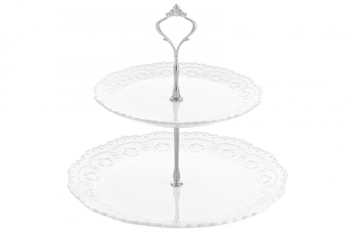 БЫЛО 1322 руб! Блюдо-этажерка 2-х ярусная 28*28*25 см "Белый узор" с серебристым креплением, для фруктов и конфет