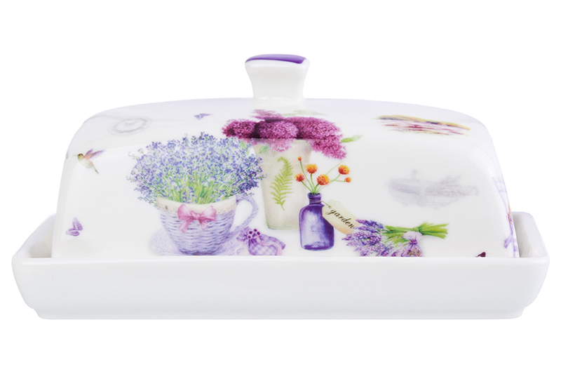 БЫЛО 625 руб! Масленка 13,5*9*6,5 см "Лаванда" NEW BONE CHINA