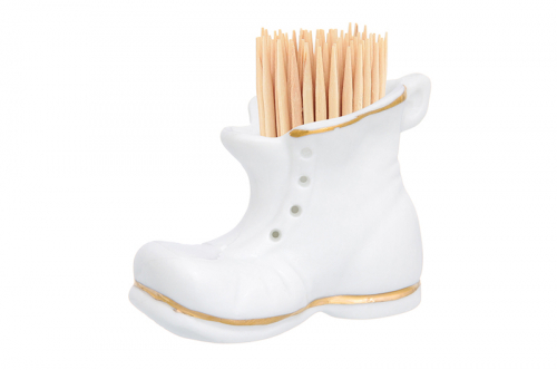 БЫЛО 239 руб! Вазочка п/зубоч. 7*3*5 см "Башмачок" белая, золото