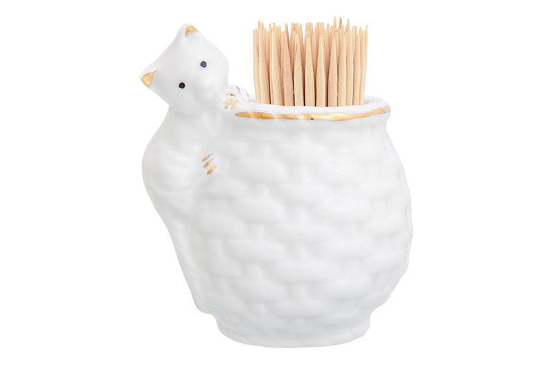 БЫЛО 258 руб! Вазочка п/зубоч. 5,8*4,5*7,5 см 50 мл "Котенок с вазой" белая, золото