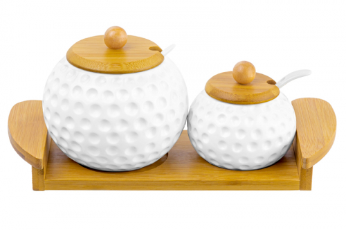 БЫЛО 1194 руб! Набор - сахарница 550 мл + солонка 170 мл 27*11,5*12 см "Сфера" + 2 ложки на дер. подст.