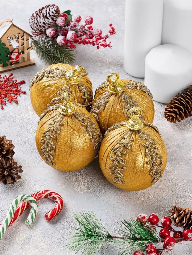 БЫЛО 1215р! Набор из 4-х новогодних шаров, 10х10 см