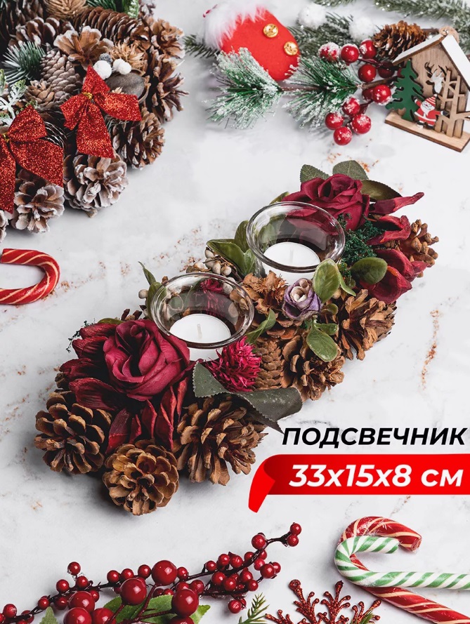 БЫЛО 906р! Новогоднее украшение подсвечник 33*15*8 см "Санта" на 2 свечи, прямоугольный