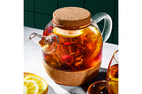 БЫЛО 1267 руб! Чайник 800 мл 19,5*12*13,5 см с ситом "Crystal glass" + пробковая крышка, стекло