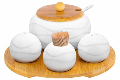 БЫЛО 1286 руб! Набор 4 пр. 20,5*20,5*10 см "Айсберг волны"- Сахарница+Вазочка п/зубоч. и набор д/спец.2 пр.на бам.п
