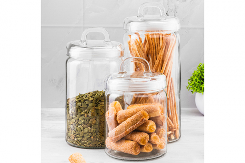 Набор 3 банок д/хранения 2 л+1,6 л+1,2 л "Glaskraft" с крышками, силиконовый уплот. на банках,стекло