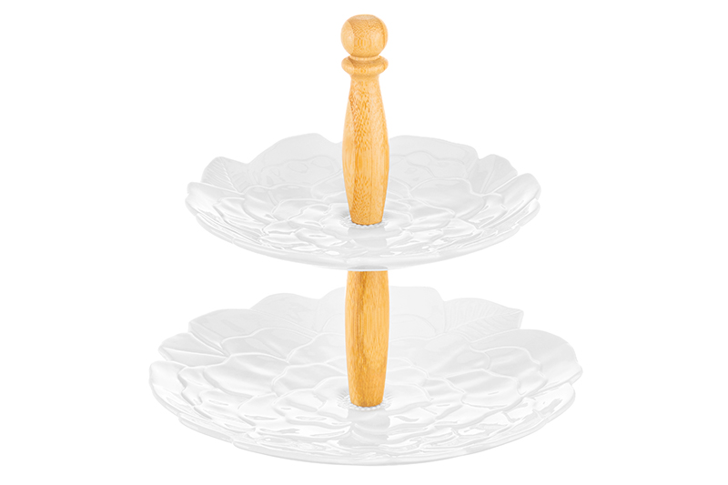 Блюдо-этажерка 2-х ярусная 25,5*25,5*24 см "Пион" с бамбуковым креплением