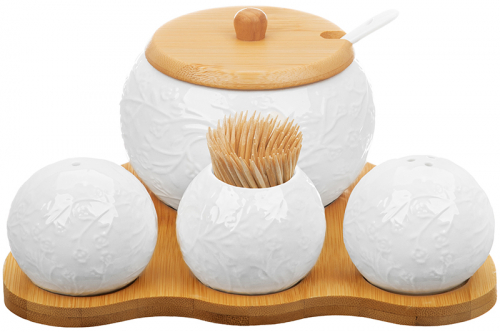 Набор 4 пр.-20*17*9 см "Веточки-цветочки" Сахарница+Вазочка под зуб.и набор для спец.2 пр.на бам.под
