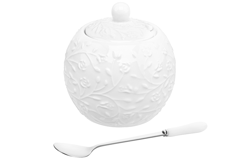 БЫЛО 661 руб! Сахарница 500 мл 11*11*12 см "Веточки-цветочки" с металлической ложкой