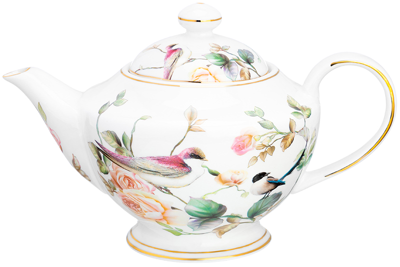 БЫЛО 1396 руб! Чайник 800 мл 22,5*14*14 см "Певчие птички" NEW BONE CHINA