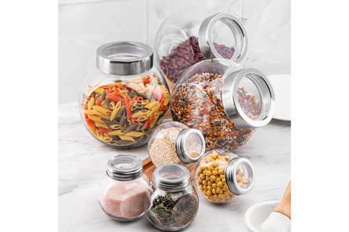 Набор 7 банок д/хранения и специй 3 пр. 1,5 л + 4 пр. 200 мл "Glaskraft" с крышками, стекло