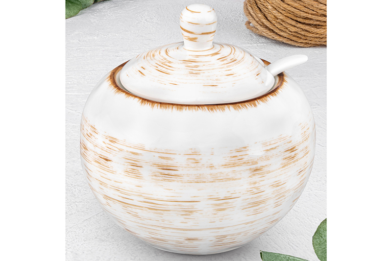 БЫЛО 775 руб! Сахарница 380 мл 10,2*10,2*10,5 см "Кантри" + ложка, натуральная