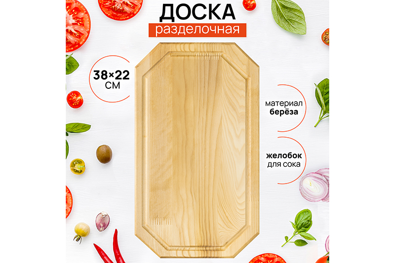 Доска разделочная 38*22*1,8 см "Прямая ручка"