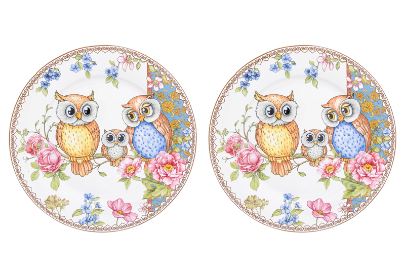 БЫЛО 1495 руб! Набор тарелок 2 пр. 26*26*2 см "Совушки" NEW BONE CHINA