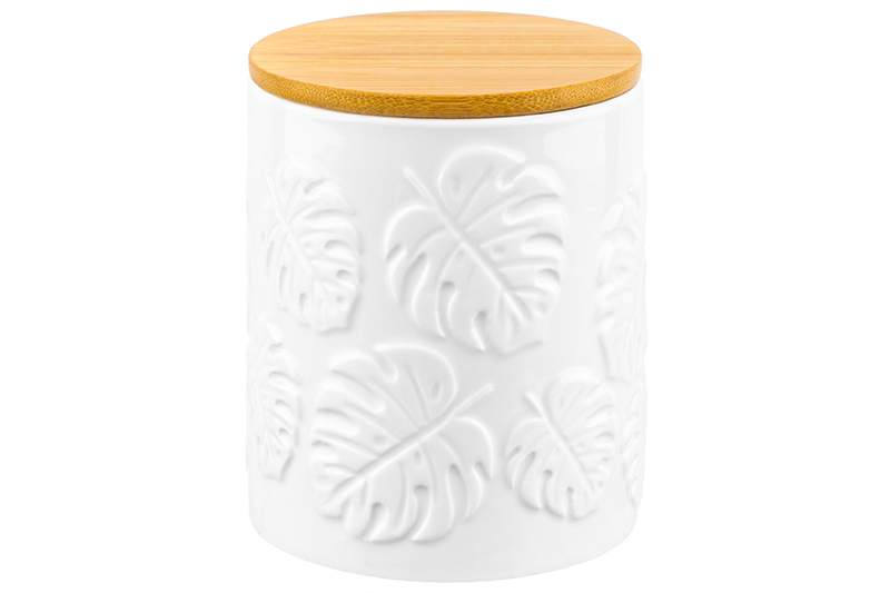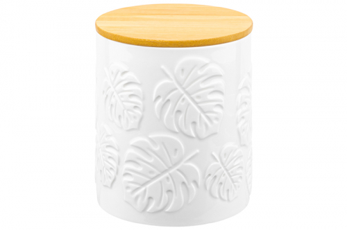 БЫЛО 761 руб! Банка для сыпучих продуктов 700 мл 14,5*13,5*11,5 см "Белая" + откидная бамбук.крышка, керамика