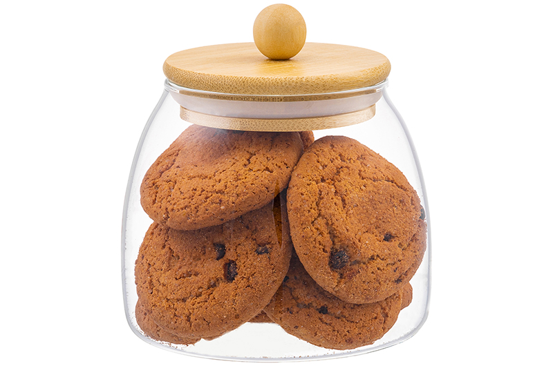 БЫЛО 642 руб! Банка д/хранения 700 мл 11,5*11,5*12 см "Crystal glass" + бамбуков.крышка с силикон. прокладкой,стек