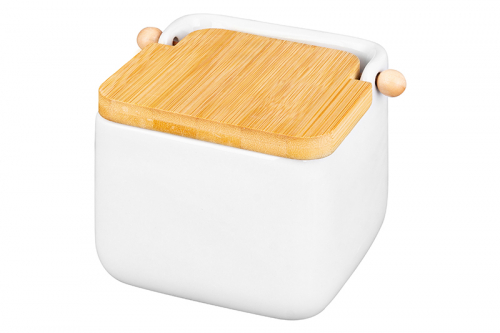 БЫЛО 778 руб! Банка для сыпучих продуктов 850 мл 14*12*11 см "Белая" + откидная бамбук.крышка, керамика