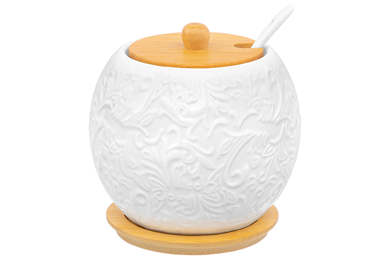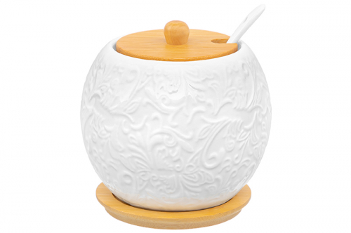 БЫЛО 900 руб! Набор - сахарница 350 мл 15*15,5*9 см "Веточки-цветочки" с ложкой + солонка+ перечница дер.под.