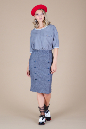 Ст.цена 1090р Юбка 48602 серый/черный/синий