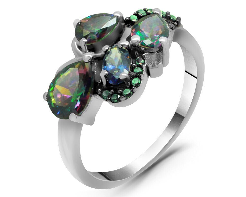 Кольцо из серебра мистик кварц, наноизумруд, Гавот