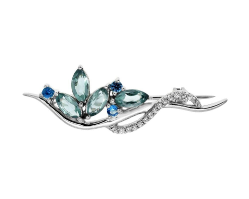 Брошь из серебра турмалин лазурный выращ., Вуаль