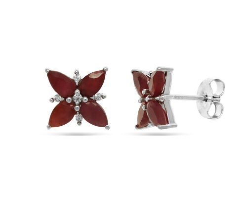 Серьги из серебра рубин корунд, Гербера