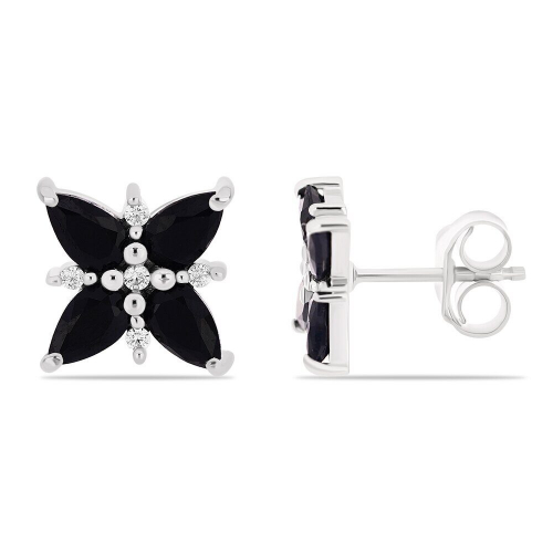 Серьги из серебра сапфир корунд, Гербера