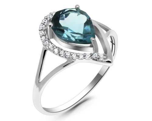 Кольцо из серебра лондон топаз кварц, нанотопаз, Ажур