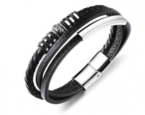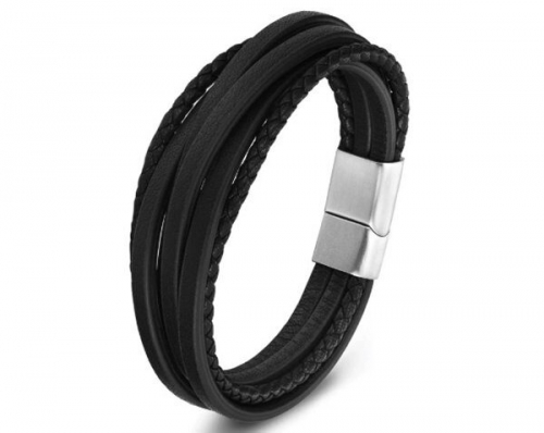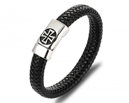 Браслет из кожи и стали, ALB57-1