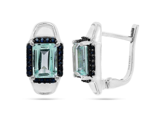 Серьги из серебра топаз, наносапфир, Калестро