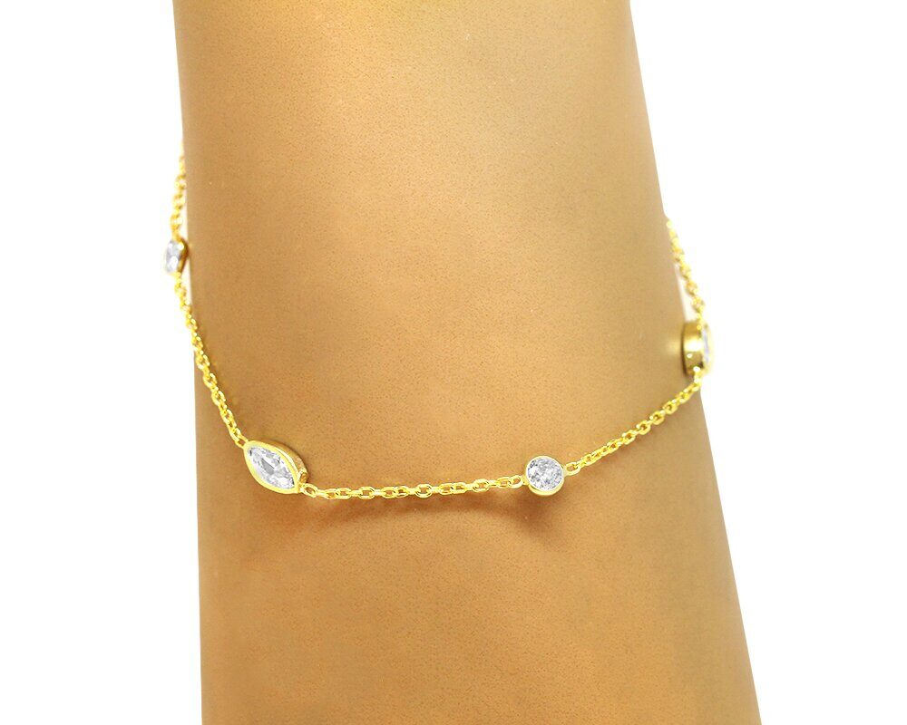 Браслет на ногу из серебра куб.циркон., МЦВА198ч
