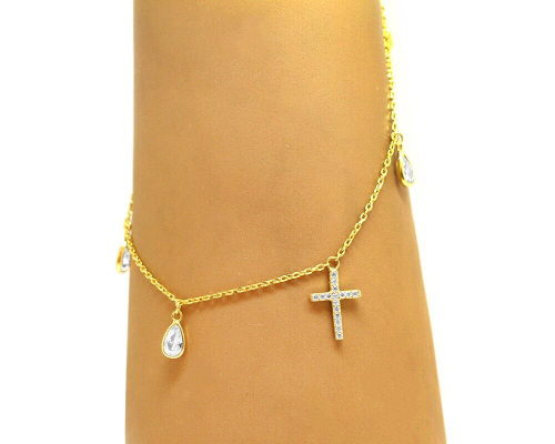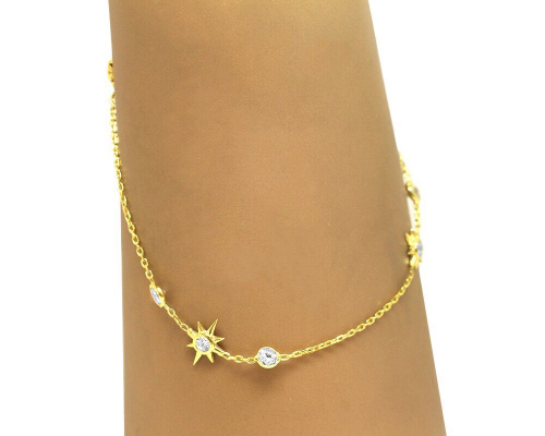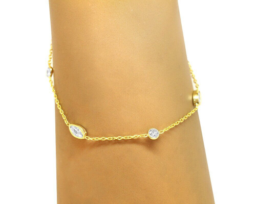 Браслет на ногу из серебра куб.циркон., ТФБ-84