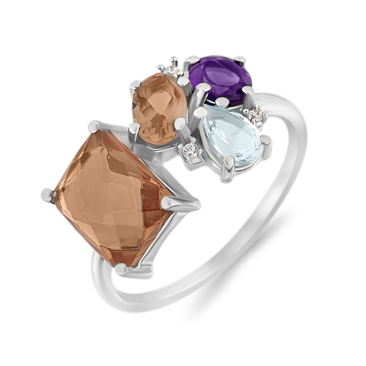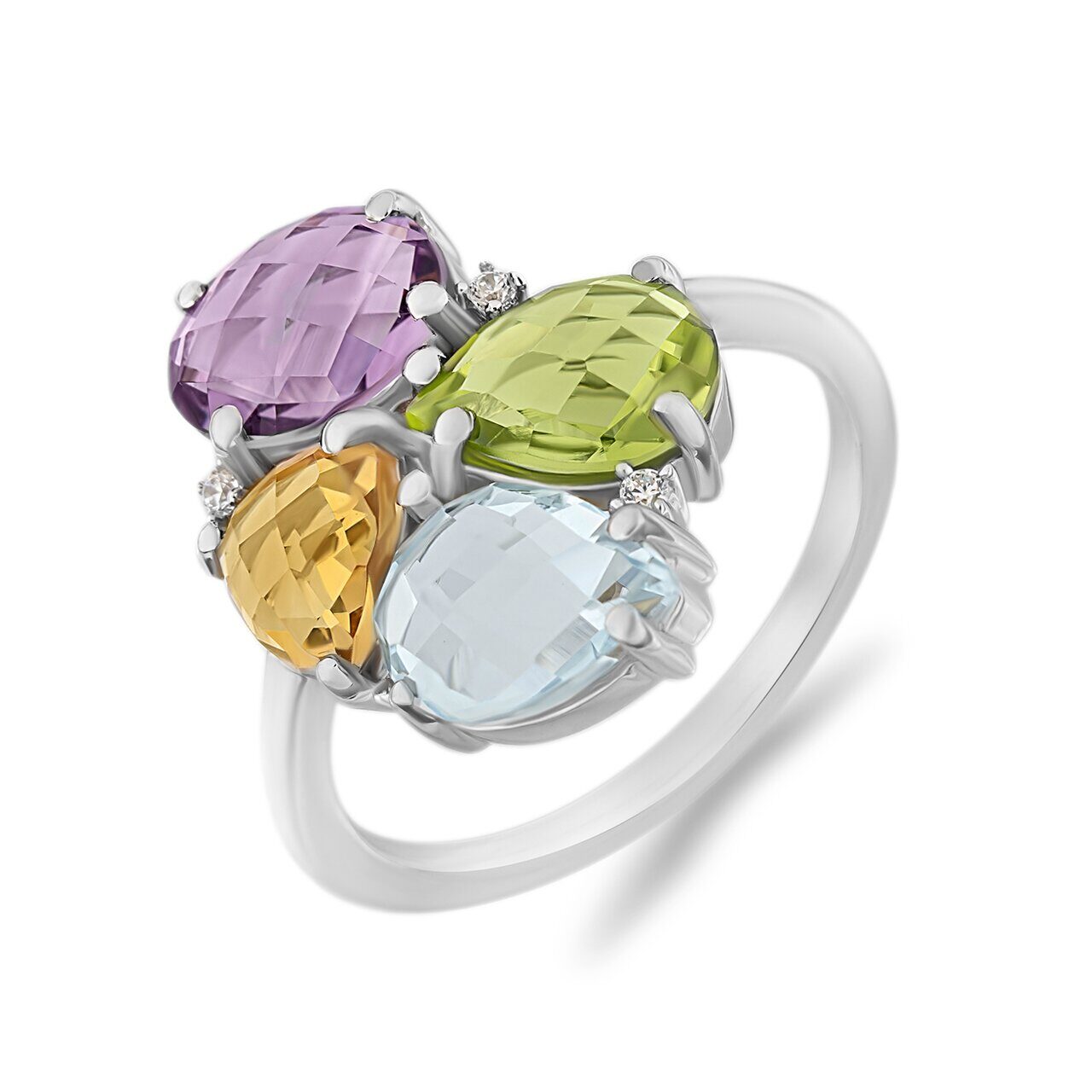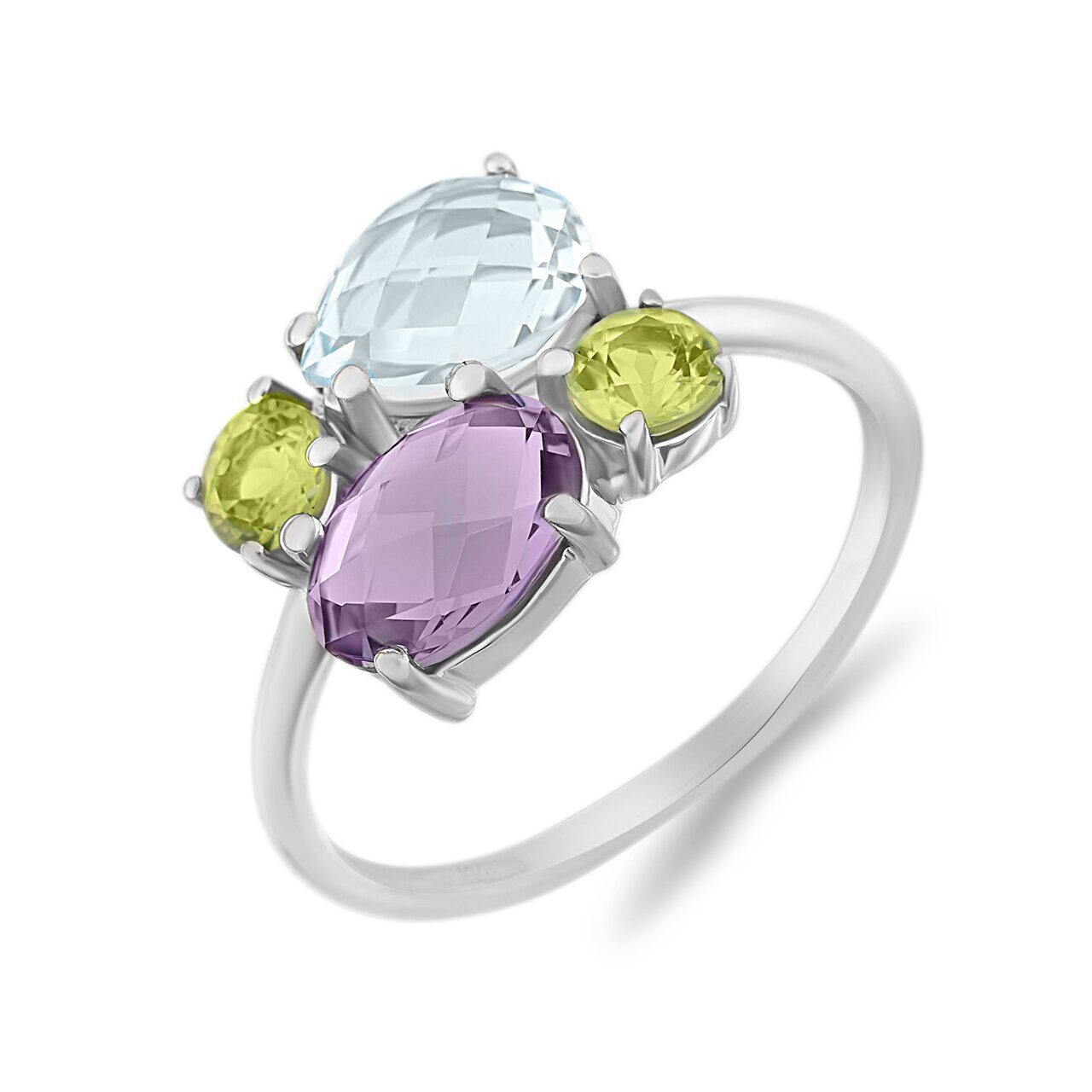 Кольцо, аметист , перидот , топаз , цитрин, Виола