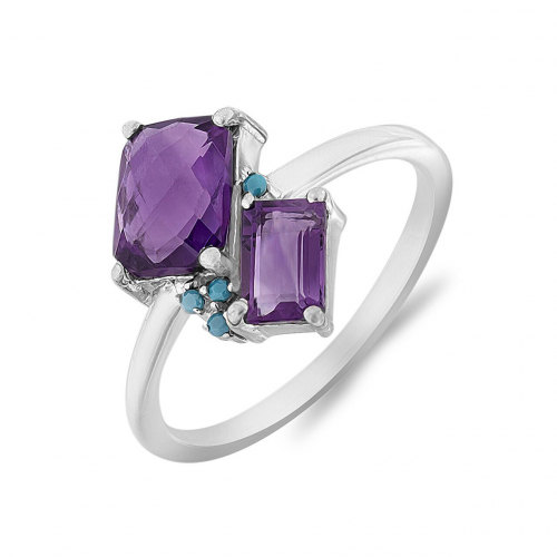 Кольцо, аметист , микробирюза, Искра