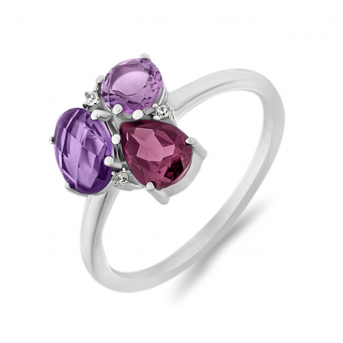 Кольцо, аметист , родолит, Памела