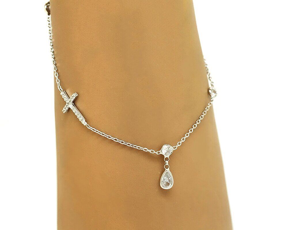 Браслет на ногу из серебра куб.циркон., ТФБ-1105