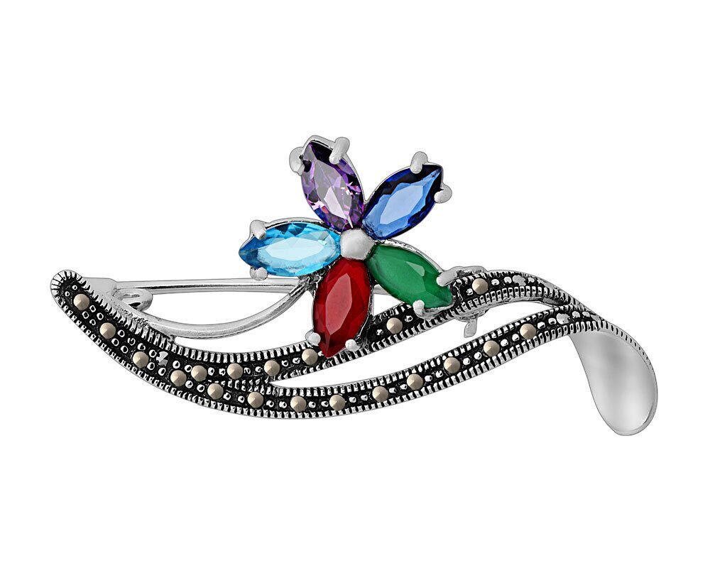 Брошь, марказит , синт.изумруд , синт.рубин , синт.сапфир, SL-AGA1503